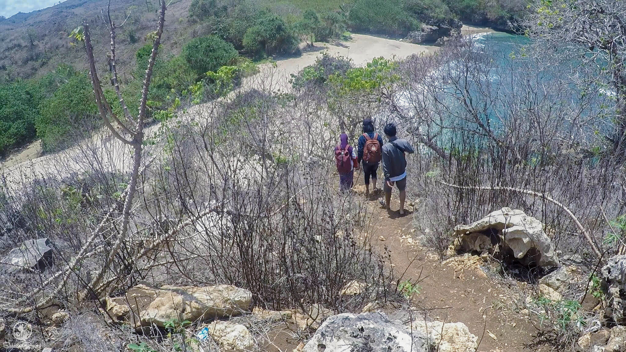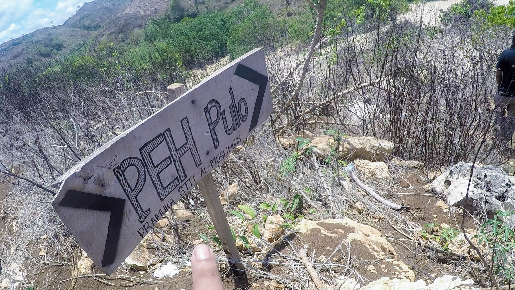 Jadi, untuk teman-teman yang ingin ke sana, setelah sampai di Pantai Sumbersih, langsung saja menuju ke sebalah timur. Nanti akan ada tanjakan yang lumayan curam, tapi masih bisa dinaiki oleh motor-motor kecil kok :D. Mengitari bukit yang berjarak kurang lebih 1 km nanti kalian akan menjumpai papan tanda Pantai Peh Pulo. Kalian harus meninggalkan motor kalian di sini dan melanjutkan dengan berjalan kaki menuruni Bukit.