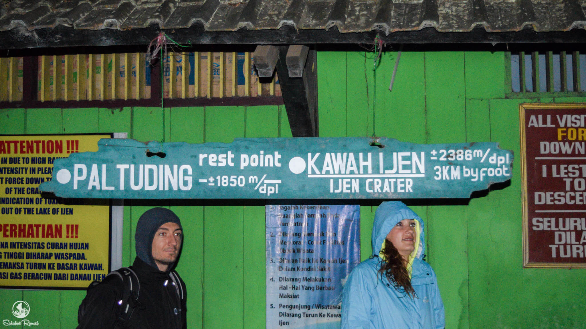 Menempuh waktu kurang lebih 1 jam, sampai juga kami di pos Pendakian Gunung Ijen, di Desa Paltuding. Di sini ternyata kita sudah ada di ketinggian 1850 mdpl, dan dinginnya sudah mulai menusuk-nusuk tulang. Kami harus menunggu hingga pukul 02.00 untuk bisa memulai pendakian. Menurut warga sekitar, kita baru di diperbolehkan naik pukul 2 karena untuk menghindari gas beracun dari Kawah Gunung Ijen.