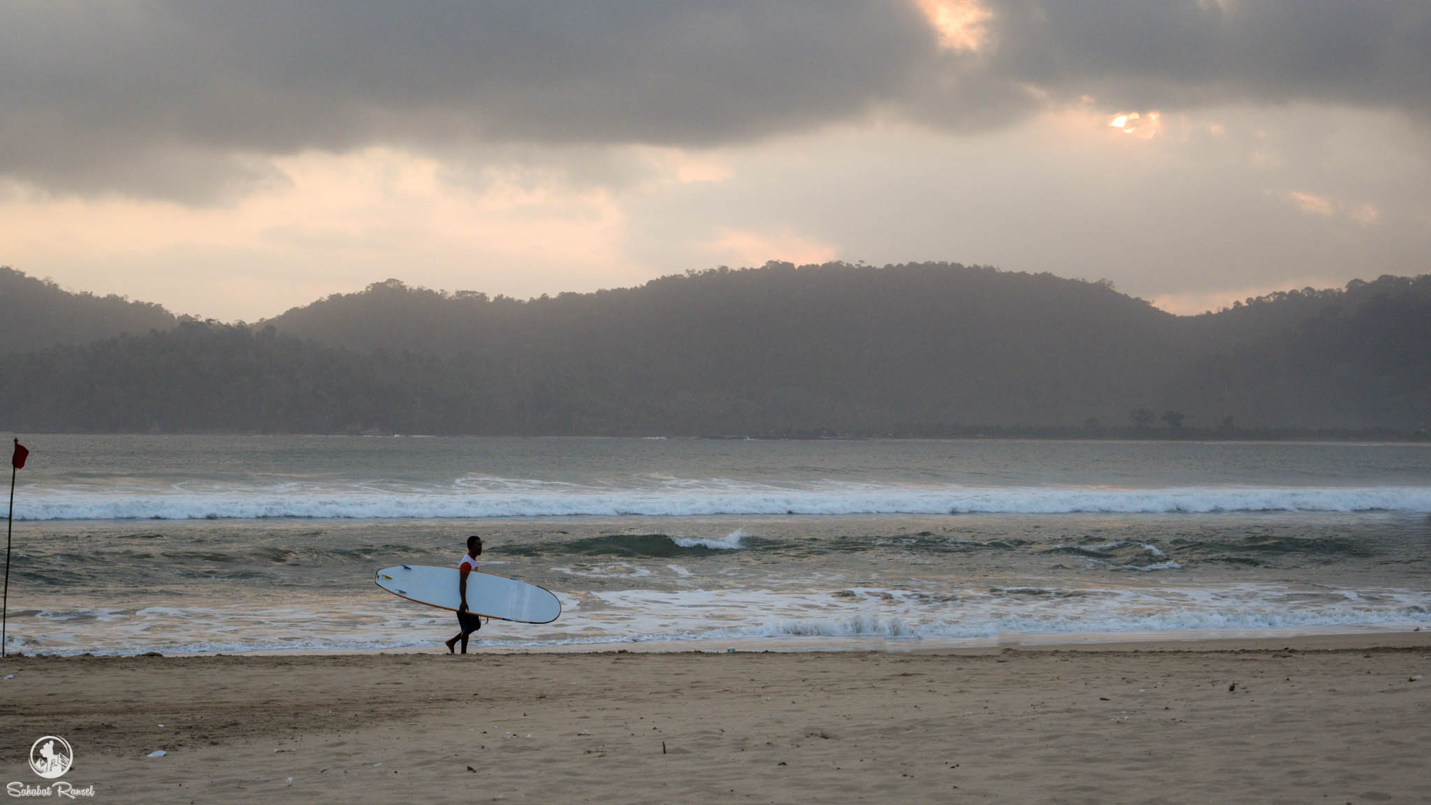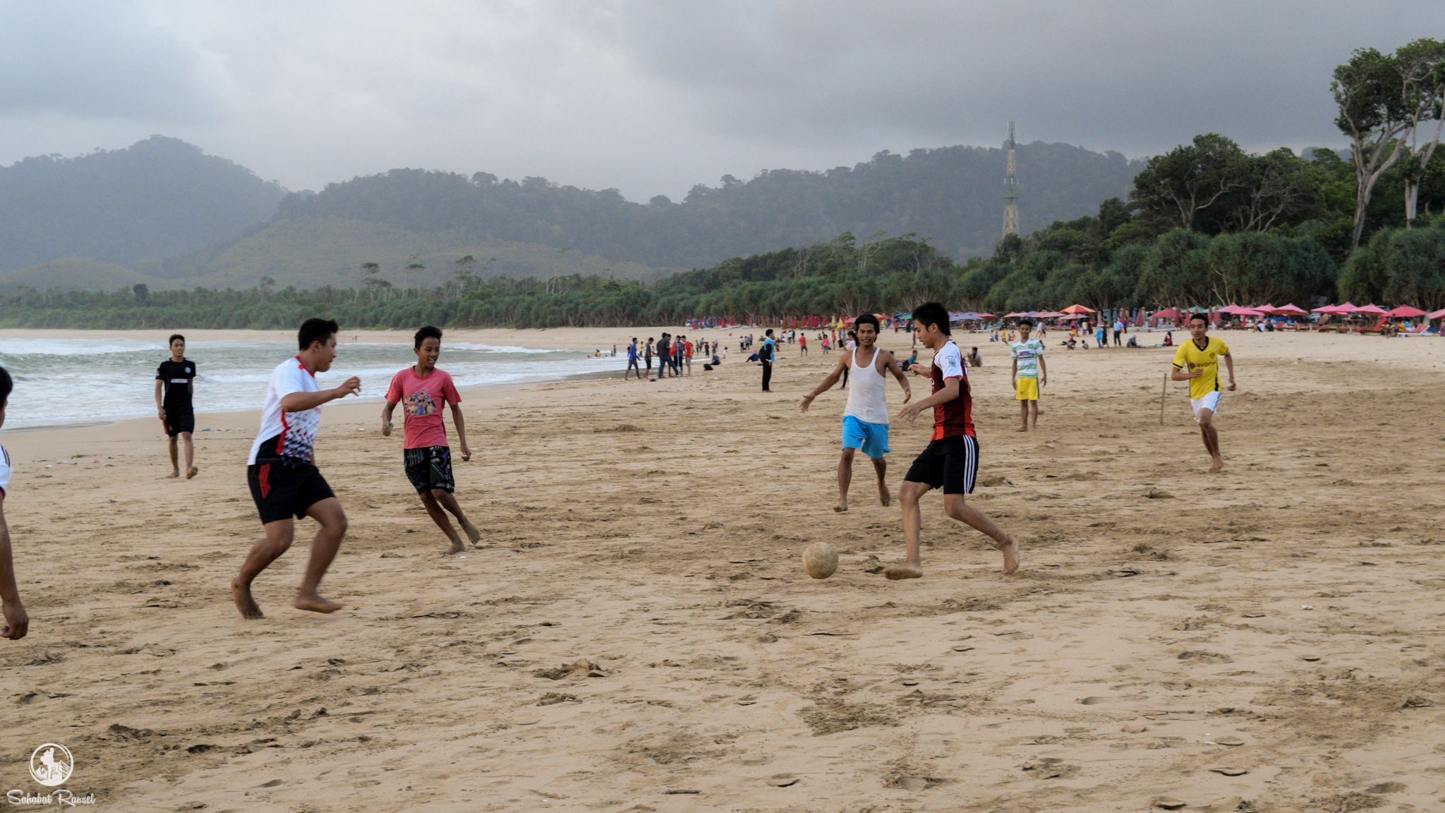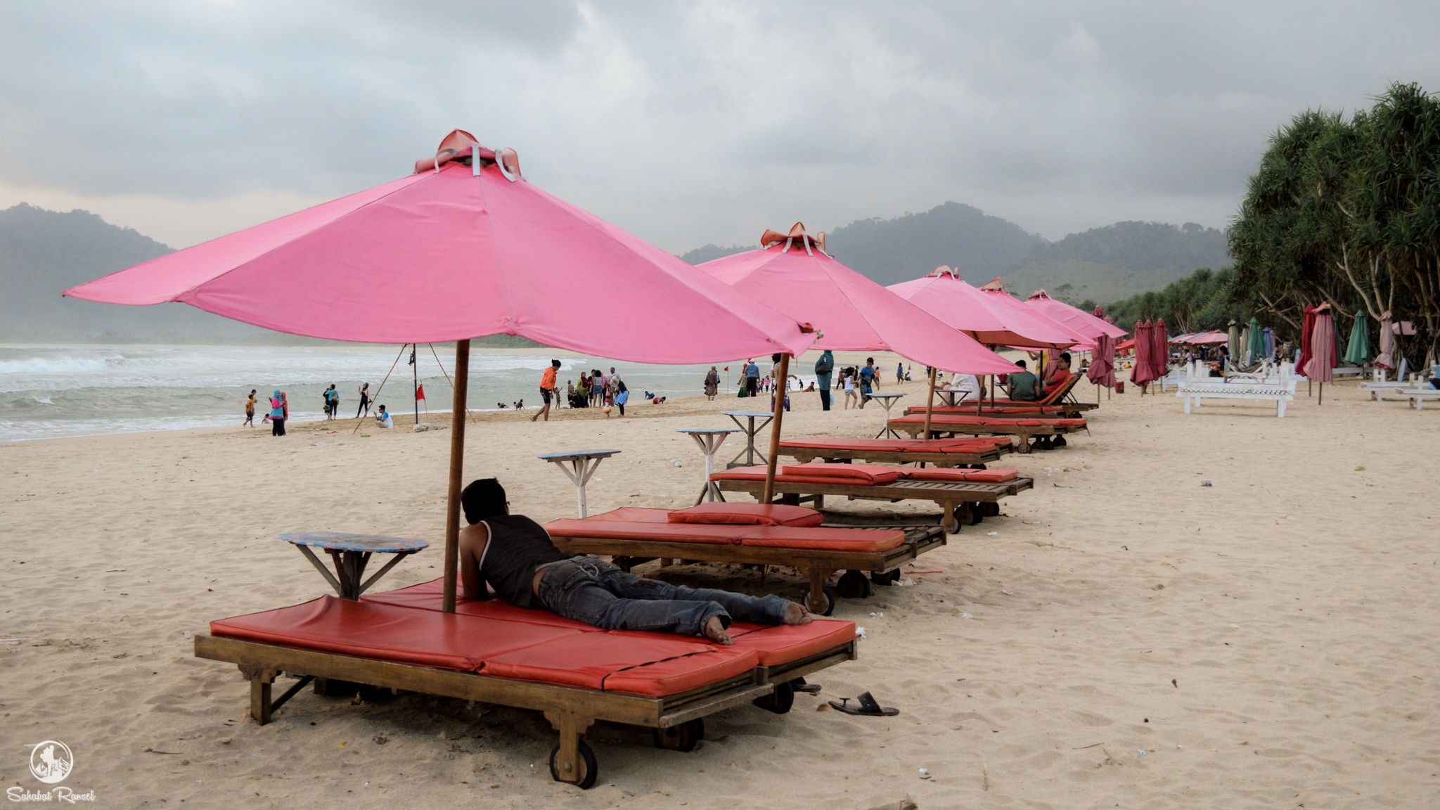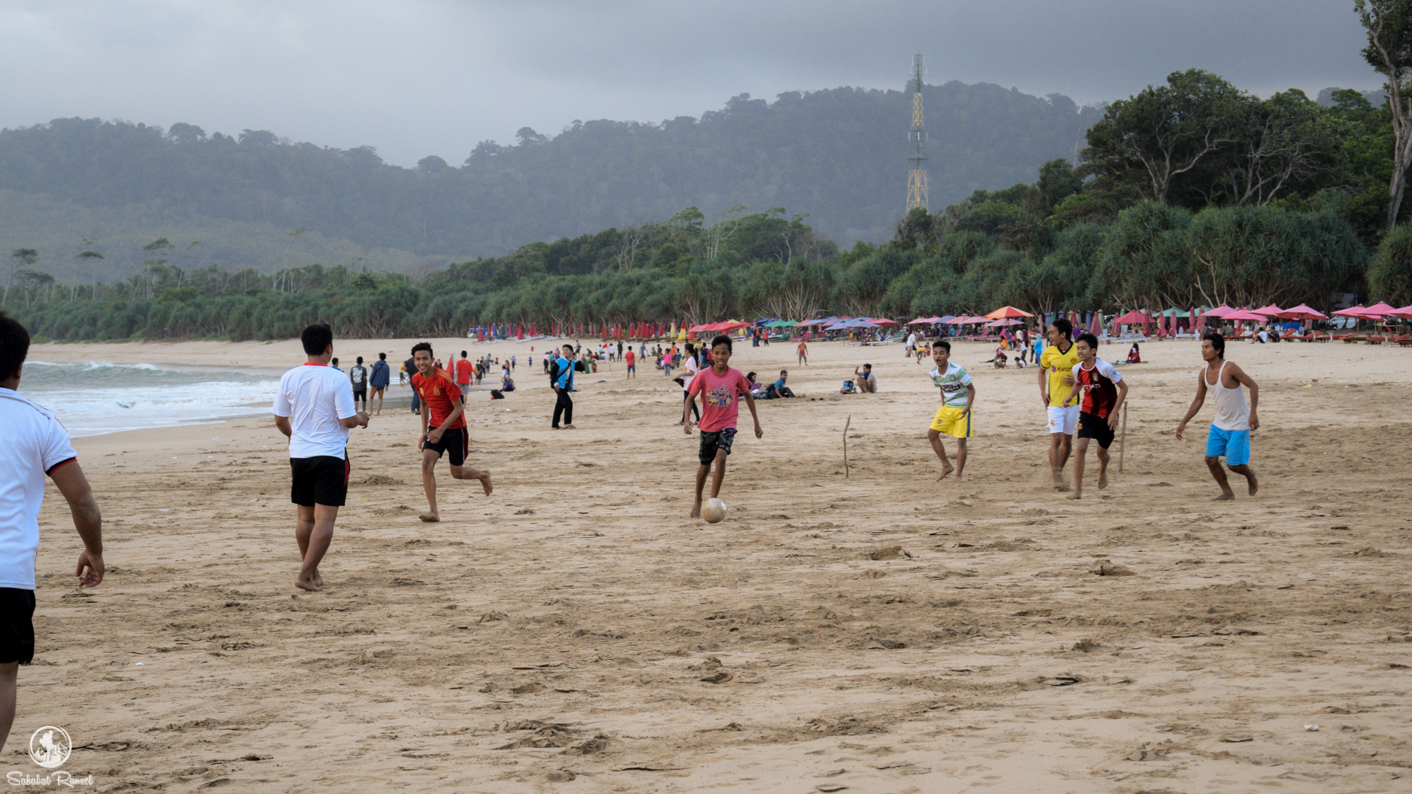 Banyak yang mengatakan, waktu yang tepat untuk kita berkunjung ke pantai ini adalah sore hari ketika matahari tenggelam. Tapi, sangat disayangkan cuaca kurang bersahabat ketika kami datang ke sana. Awan hitam menutupi langit di atas pantai. Tapi dengan cuaca seperti itupun, kami masih bisa menikmati indahnya sore hari di sini. Selain menjadi wisata keluarga, di sini juga banyak warga sekitar yang turut bermain di pantai. Sore itu, kami pun melihat beraneka ragam pengunjung. Mulai dari yang memang datang untuk berwisata, anak-anak muda yang latihan bela diri, sampai banyak juga anak-anak yang bermain di tepi pantai. Tapi perlu diketahui, ombak di sini bisa digolongkan ombak yang besar. Jadi, saya sarankan untuk berhati-hati bila bermain air.