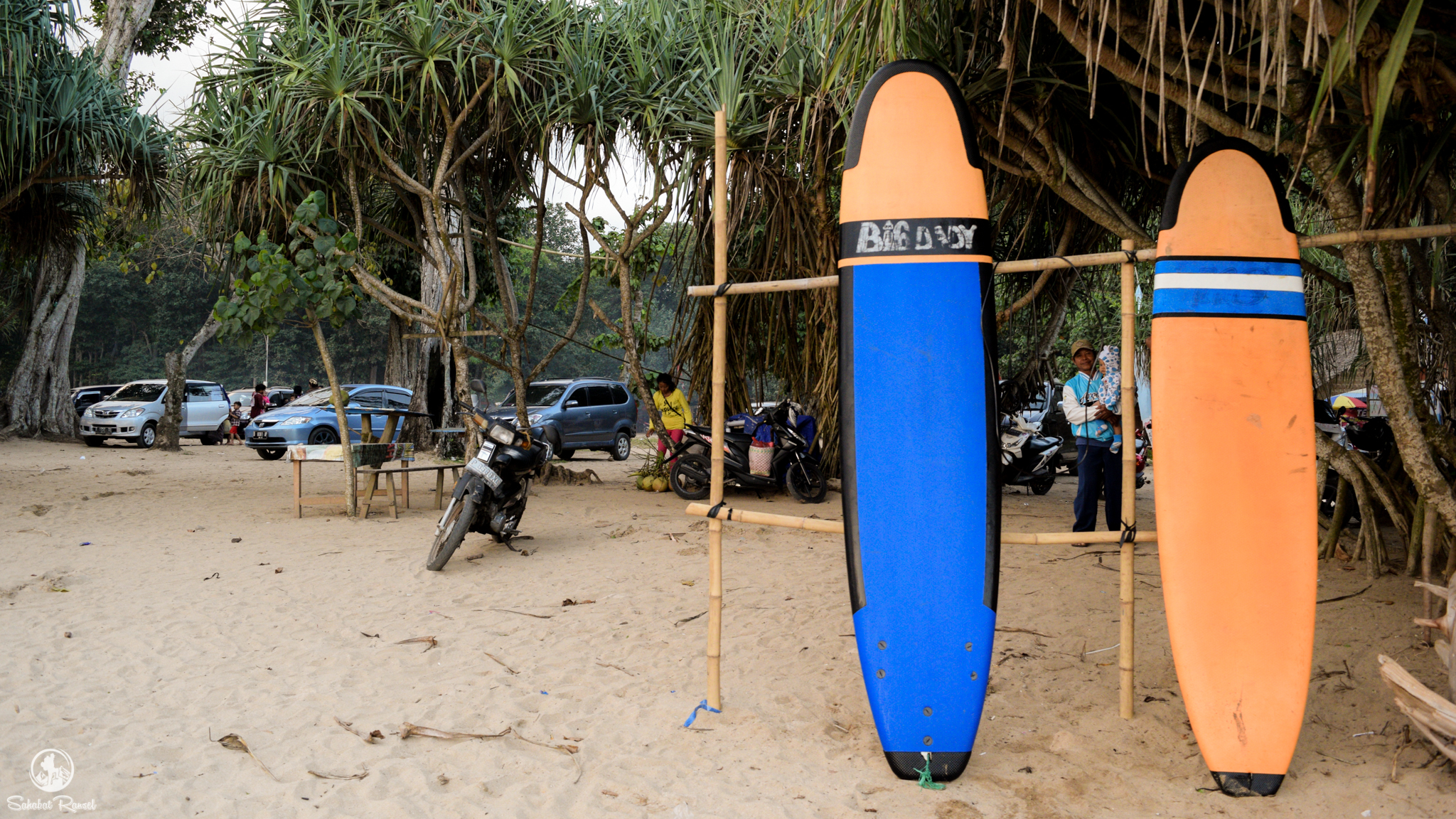 Ombak yang besar tidak menyurutkan wisatawan untuk datang ke Pantai Pulau Merah ini. Malahan, ombak tersebut jadi salah satu daya tarik bagi para wisatawan yang berkunjung ke pantai ini. Ombak yang besar menjadi idaman bagi para peselancar yang datang ke Pantai Pulau Merah. Beberapa lomba selancar yang bertingkat internasional pun juga pernah diadakan di sini, lo. Bagi kalian yang ingin mencoba berselancar di sini tapi tidak membawa papan selancar, jangan berkecil hati. Sebab, di sini juga banyak warga sekitar yang menyewakan papan selancar untuk bisa kalian gunakan. Untuk biaya sewa, biasanya berkisar antara 25.000 hingga 50.000 rupiah.