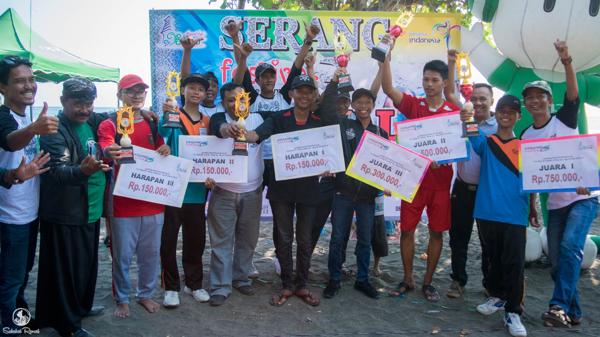 Setiap keringat yang menetes pun terbayar dengan senyum dan tawa para juara ini. Pengumuman kejuaraan langsung diumumkan oleh Bapak Handoko selaku Kepala Desa Serang. Dan ternyata, beda perolehan poin masing-masing kelompok sangatlah tipis, dan sempat membuat para perserta berdebar menunggu pembacaan pemenang ini. Akhirnya, juara pertama diamankan oleh SMA Islam as-Salam Gandusari Kab. Blitar. Usut punya usut, ternyata SMA Islam as-Salam ini merupakan juara bertahan sejak Festival Patung Pasir tahun lalu.
