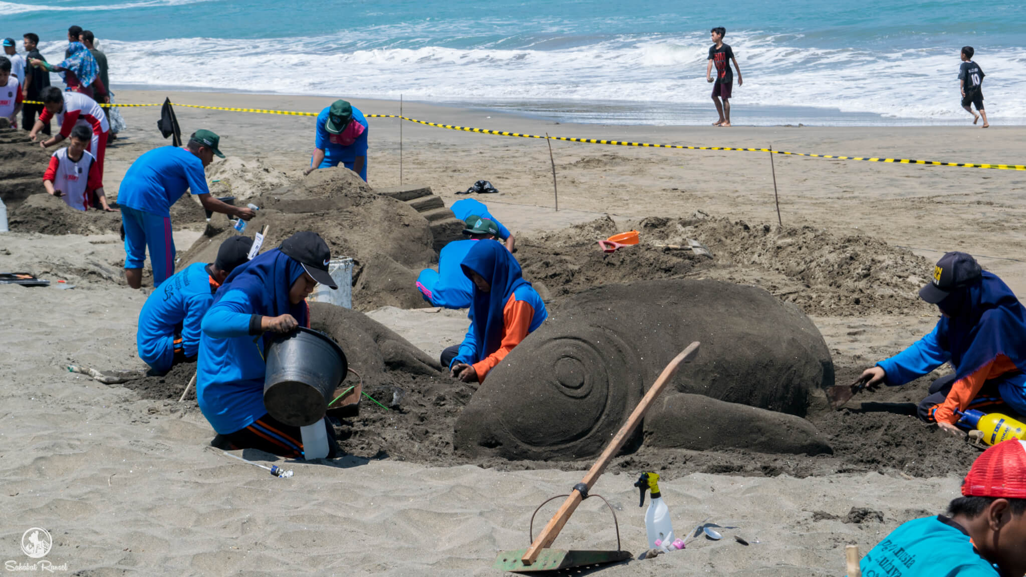 Dimulai pukul 9, acara ini mengundang banyak pengunjung. Pengunjung ramai melihat proses pembuatan patung pasir. Beberapa dari mereka juga mulai menebak-nebak akan jadi seperti apa nantinya gundukan-gundukan pasir yang mulai dibuat oleh para peserta.